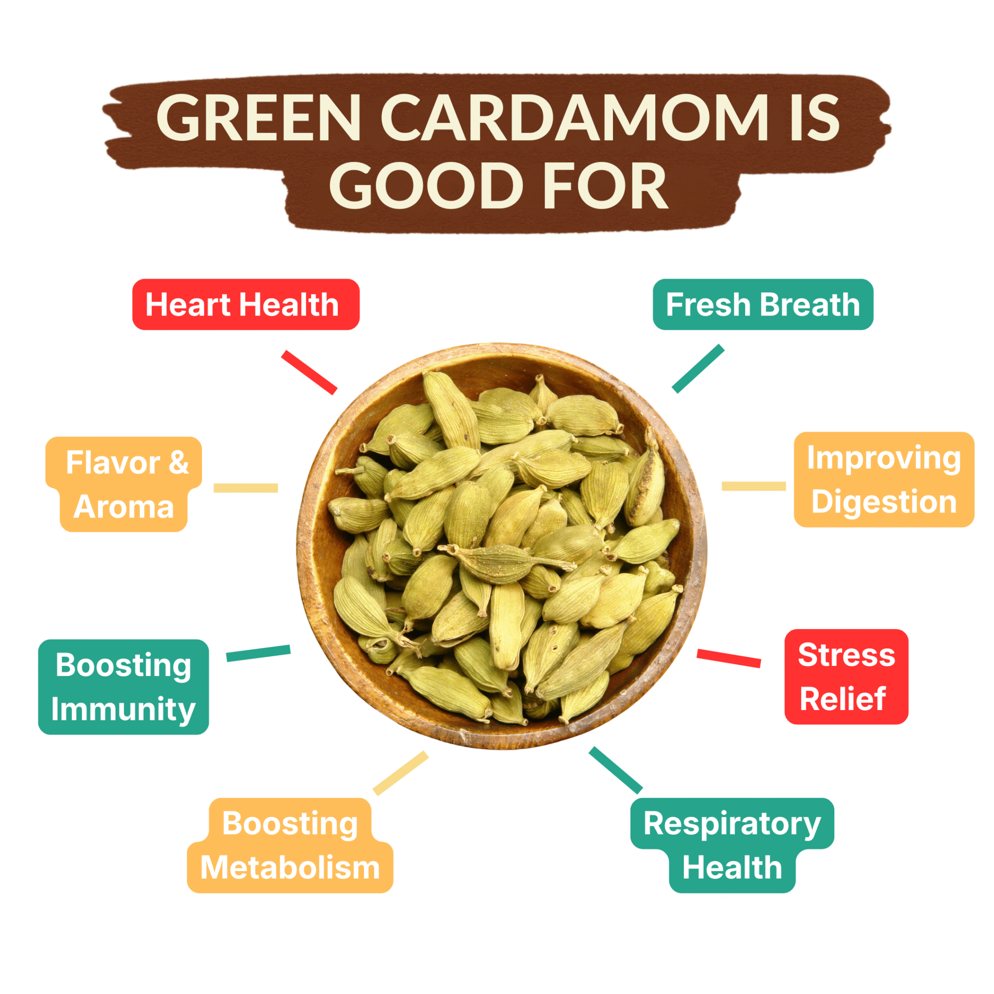 Our green cardamom provides small but aromatic pods having rich flavor and bright colors- excellent in teas, coffees, desserts, curries, biryanis, spices and herbs.